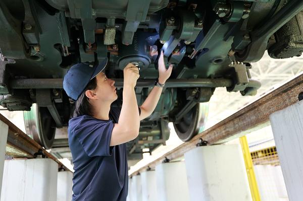 轉(zhuǎn)向架是列車的“底盤”,作為車輛的走行系統(tǒng),猶如人的雙腿,是保障行車安全的核心部件之一。智慧運(yùn)營(yíng)分公司相關(guān)負(fù)責(zé)人介紹道:“軸箱內(nèi)置式轉(zhuǎn)向架就是把軸箱體、一系懸掛等部件從車輪外側(cè)移到車輪內(nèi)側(cè)。轉(zhuǎn)向架采用‘H’型構(gòu)架,各類零部件充分利用構(gòu)架內(nèi)部空間,使轉(zhuǎn)向架更加緊湊。”